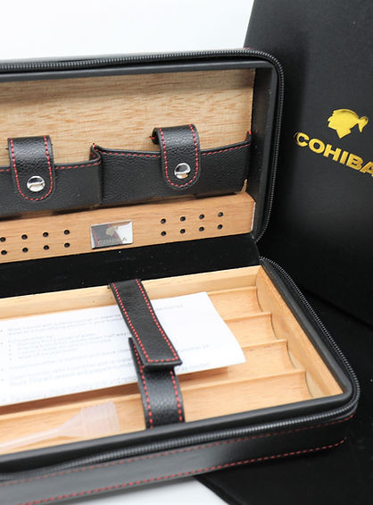 Elegant and durable, the Cohiba Cigar Box in black leather is designed for discerning cigar enthusiasts. Crafted from high-quality leather, it offers a stylish and secure way to store your cigars, whether at home or on the go. With its sleek finish and signature Cohiba quality, it’s a refined accessory that complements any collection.
